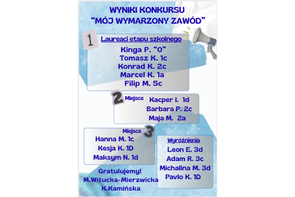 Wyniki etapu szkolnego VIII Ogólnopolskiego Konkursu Plastycznego "Mój wymarzony zawód"