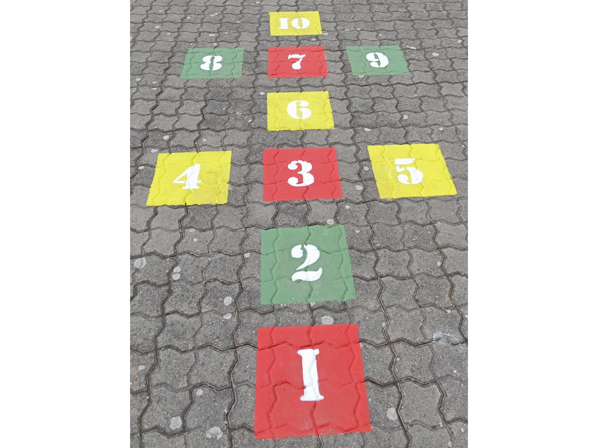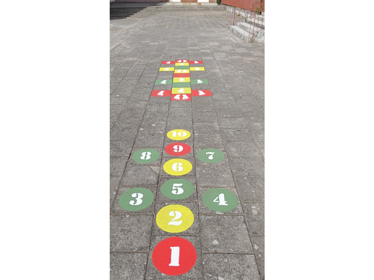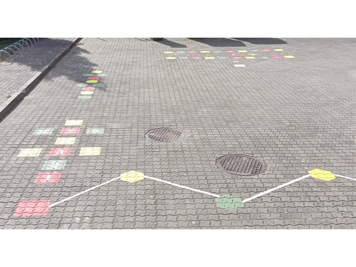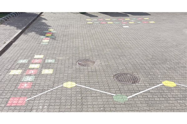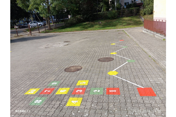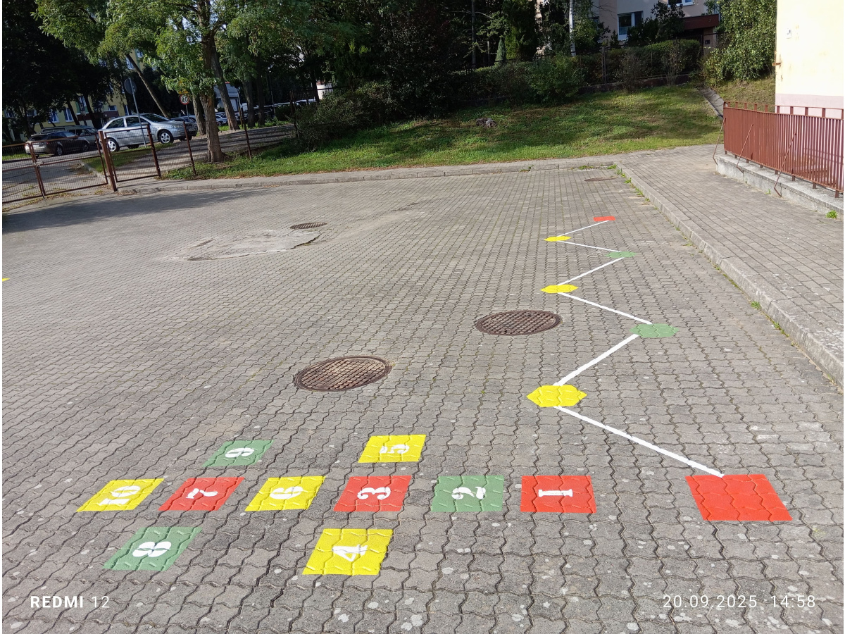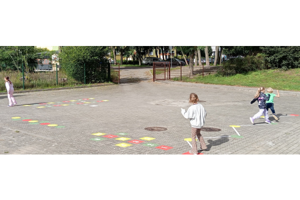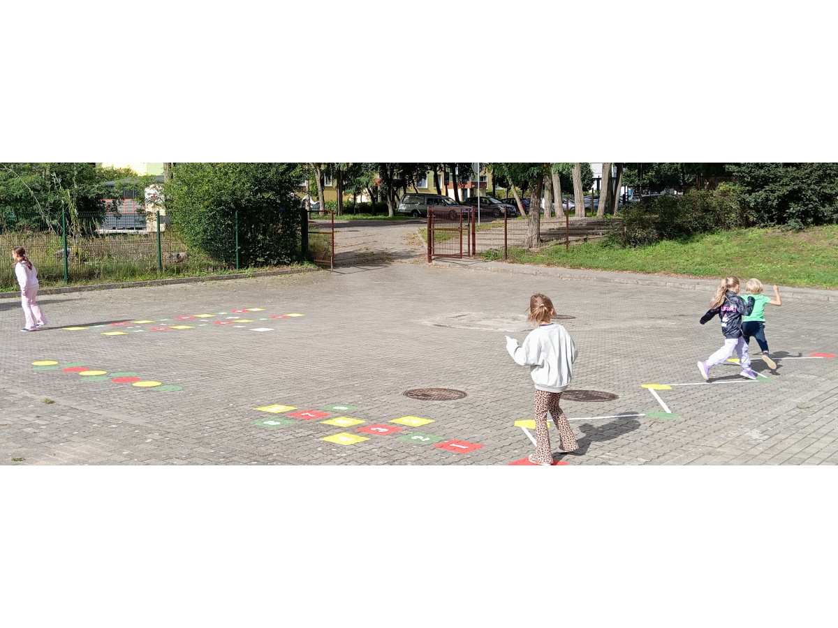 W ramach realizacji Bydgoskiego Grantu Ekologicznego na naszym boisku szkolnym przy głównym budynku naszej szkoły oraz przy filii pojawiły się kolorowe gry chodnikowe, które zostały własnoręcznie namalowane przez dwie nauczycielki edukacji wczesnoszkolnej - wychowawczynię klasy 1e oraz 3d. To wspaniała inicjatywa, która nie tylko uatrakcyjnia szkolną przestrzeń, ale również wspiera aktywność ruchową i integrację wśród uczniów.