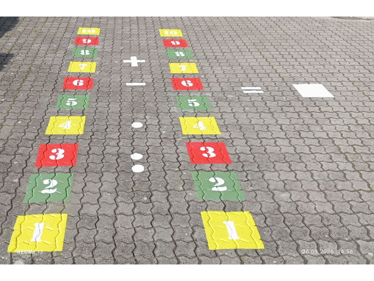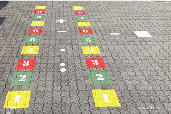Do realizacji pomysłu wykorzystano specjalistyczne farby oraz niezbędne narzędzia malarskie zakupione z funduszy zebranych podczas I Szkolno-Osiedlowego Kiermaszu Roślin Doniczkowych i Ogrodowych, który odbył się w szkole 28.05.2025 r. Dzięki zaangażowaniu społeczności szkolnej – uczniów, rodziców i nauczycieli – możliwe było zakupienie niezbędnych materiałów w celu stworzenia przestrzeni do przyjaznej, inspirującej, aktywnej, a także twórczej zabawy na świeżym powietrzu. Gry mają na celu nie tylko uatrakcyjnienie przerw i zajęć na świeżym powietrzu, ale także wspieranie rozwoju ruchowego, integracji rówieśniczej oraz nauki przez zabawę. Kolorowe plansze do takich gier jak klasy, tory zręcznościowe, równoważnia oraz gra matematyczna cieszą się dużym zainteresowaniem wśród uczniów i na stałe wpisały się w krajobraz szkolnych przerw.