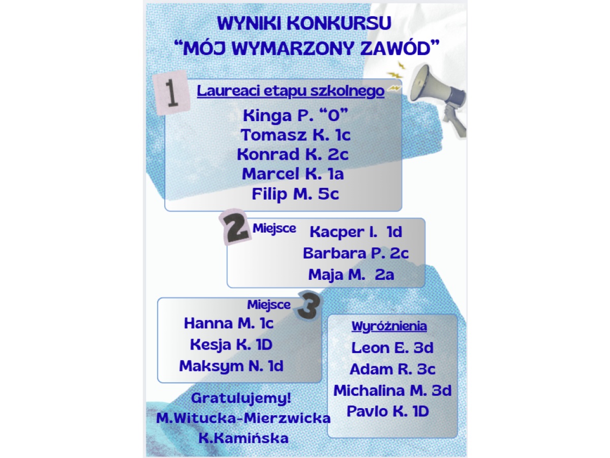 Wyniki etapu szkolnego VIII Ogólnopolskiego Konkursu Plastycznego "Mój wymarzony zawód"